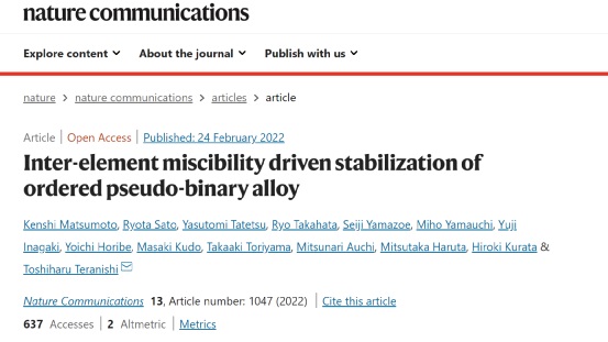提出元素间混溶稳定有序结构二元合金的新概念!